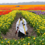 This AI-generated image depicts a young woman in a blue dress standing in a field. She is the central figure, with a serious expression. Behind her, two cows are visible: one black and the other white. The style has a somewhat rustic and historical feel, with soft lighting and a focus on the figures and their setting. The scene evokes a sense of realism, despite being AI-generated. Our analysis indicates that this image is highly likely generated by AI. No NSFW content detected.